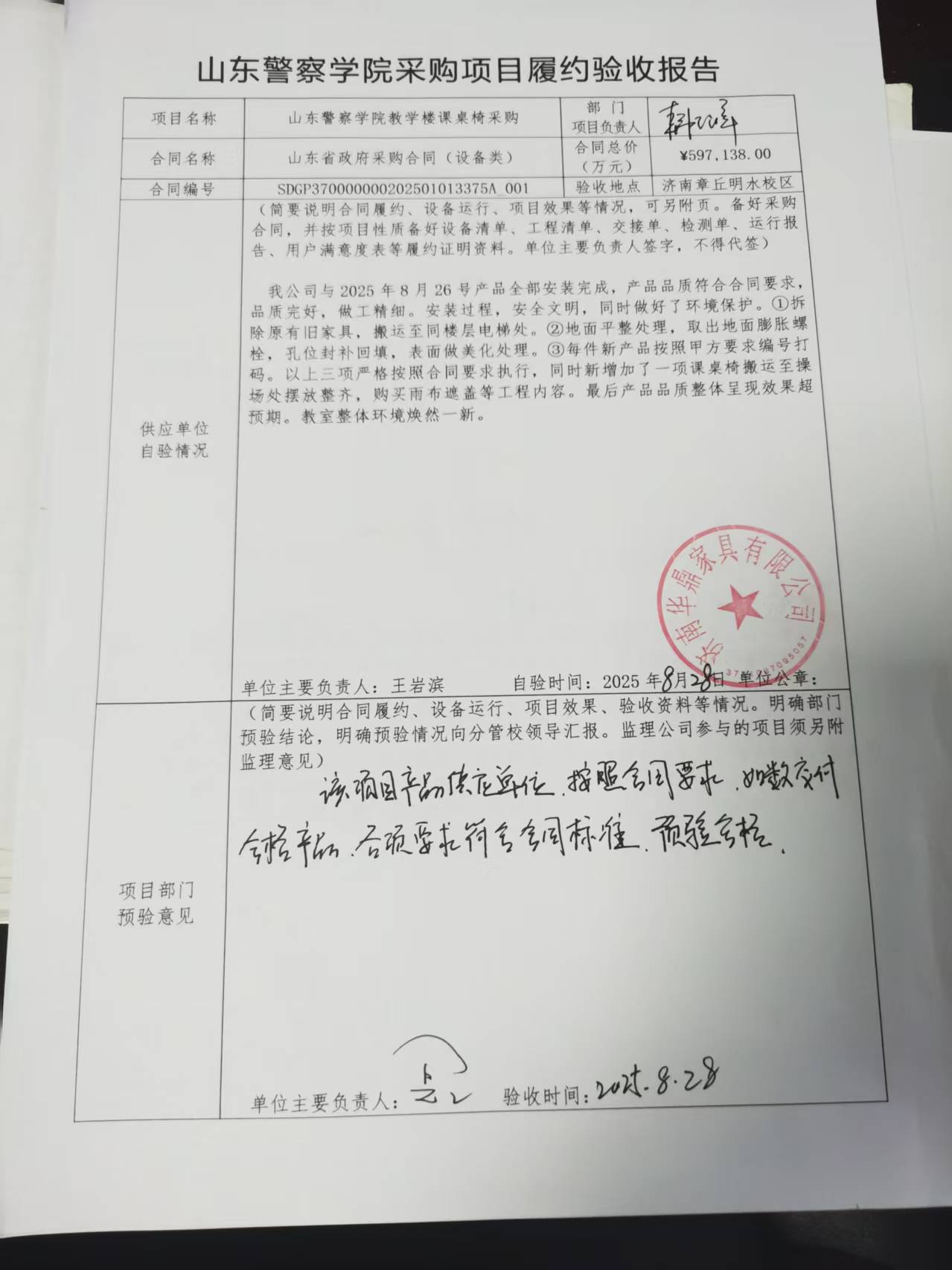 山东警察学院教学楼课桌椅采购项目