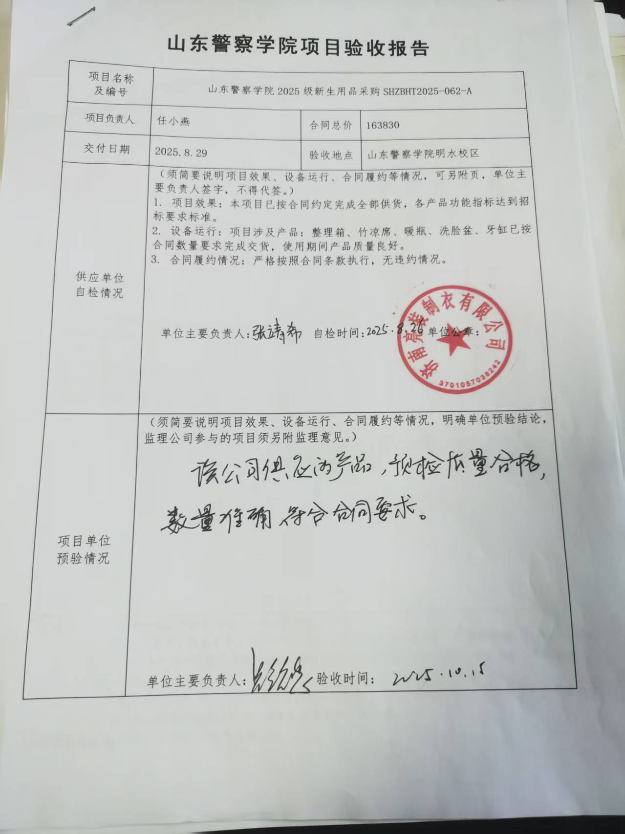 山东警察学院2025级新生用品采购A